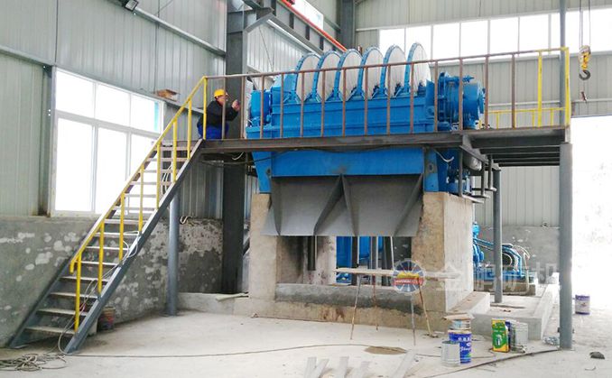 6、在精礦堆場(chǎng)附近安裝盤式過濾機(jī),精礦水分小于15%;利用選廠地形條件,將精礦自流到過濾機(jī),實(shí)現(xiàn)遠(yuǎn)程放礦自動(dòng)化控制,成功的解決了精礦粉倒運(yùn)成本高的問題。